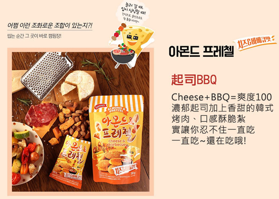 暢銷排行 起司烤肉香料杏仁:烘烤杏仁,起司香料粉(香料,麥芽糊精,紅椒醬起司香料調味料(糖粉、麥芽糊精、綜合乾酪粉(天然乾酪、乳糖、棕櫚油脂、乾酪素鈉、脂肪酸甘油脂、卵磷脂、鹽),結晶化葡萄糖,鹽,L-麩酸鈉,紅椒醬粉(紅椒醬、麥芽糊精),切達乾酪粉,乾酪香料,牛肋香料調味料(牛調味萃取物、紅椒油、辣椒油、糖粉、鹽、葡萄糖、牛萃取粉、檸檬酸)),甜起司香料調味料(綜合乾酪粉、天然乾酪、乳糖、棕櫚油脂、乾酪素鈉、脂肪酸甘油脂、卵磷脂、鹽)、結晶化葡萄糖、麥芽糊精、糖粉),奶脂粉,鹽,奶粉,L-麩酸鈉,大蒜粉,奶油,乾酪香料,切達乾酪粉,牛調味料(濃縮牛肉萃取物、鹽、醬油、乳糖、洋蔥萃取物),紅椒萃取物,甜味劑(甜菊糖苷),乾酪香料,辣椒粉,將黃油,烘烤大蒜香料,糖粉),烤肉香料糖漿(辣椒醬、辣椒油、卵磷脂、烤肉香料、烤肉香料調味粉(小麥澱粉、糖、綜合蔬菜粉(洋蔥、甘藍、波菜、南瓜、胡蘿蔔、番茄醬)、糖、洋蔥、甘藍、水解蛋白(牛肉、蛋白酵素、醬油粉、鹽、葡萄糖、麥芽糊精)、醬油粉、鹽、葡萄糖、麥芽糊精),醬油粉,鹽,麥芽糊精,酵母萃取物,結晶化葡萄糖、洋蔥萃取粉、水解植物蛋白(大豆、玉米),甘油,鹽,牛肉香料(5'鳥嘌呤核苷磷酸二鈉,維生素B1,柑橘果膠,水),紅辣椒醬,水,奶油,蜂蜜,麥芽糊精,糖,蜂蜜奶油調味料(糖粉,結晶化葡萄糖,鹽,奶油粉,果糖,糊精,奶油粉,糖蜜粉,香草香料,甜乳清粉,鼠尾草粉,奶油香料,醬油粉)....等請詳見包裝說明。
